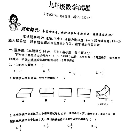 2015年青岛市中考数学试题(扫描版)