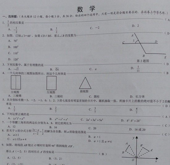 广西贺州市2016年中考数学试卷及答案解析(word版)