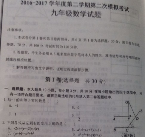 2017山东省济宁市中考数学试卷(图片版,暂无答案)
