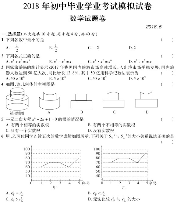 安徽省2018届初中毕业班第4次十校联考数学试题含答案