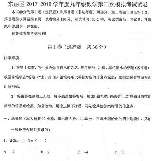 2018年天津市东丽区中考数学二模试卷含答案解析