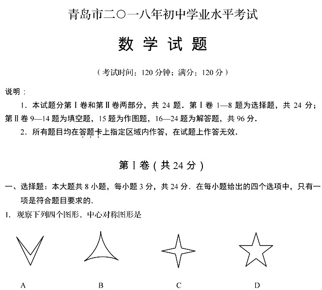 【真题】2017年山东省青岛市中考数学试卷(图片版)